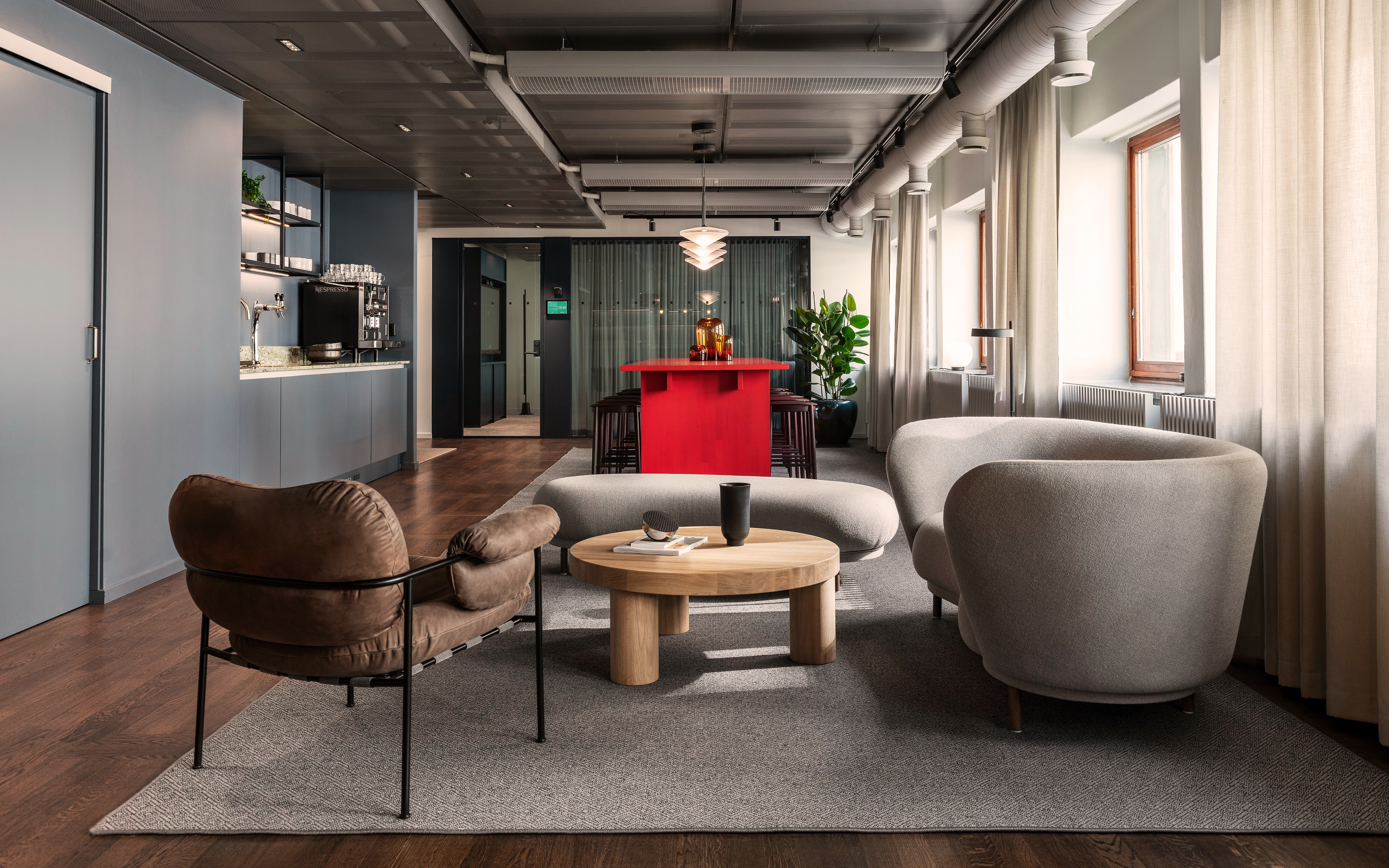 A beautiful, functional interior designed by Whyte Lilja for Futur Pension, located in Stockholm. The architects came to Fogia with a view to incorporating a number of pieces in special finishes, colours and textiles. Poppy, Dini and Figurine are just a few of Fogia’s furniture that help bring this workplace to life.