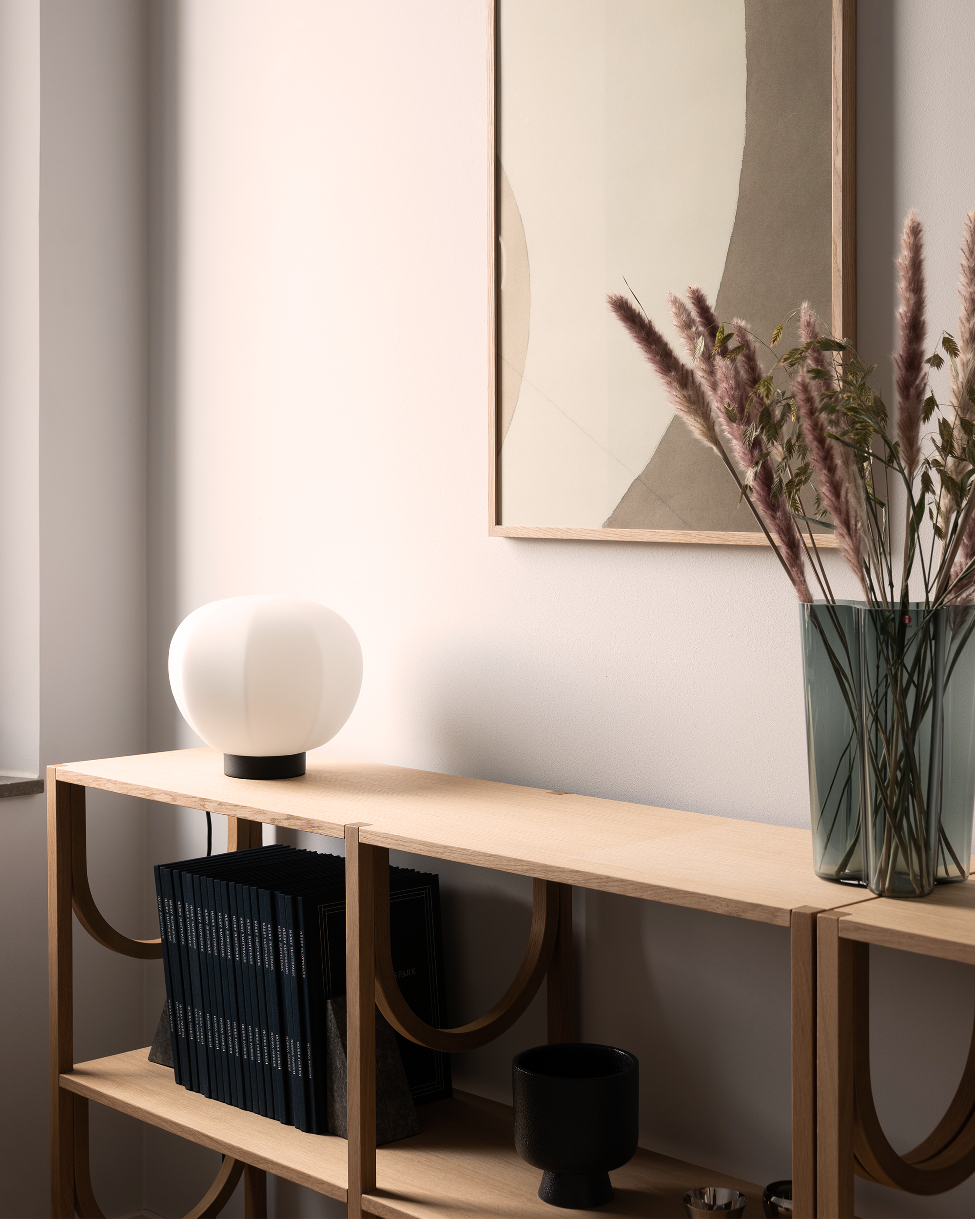 Arch High Shelf and Persimon Table lamp, both designed by NOTE(design studio).